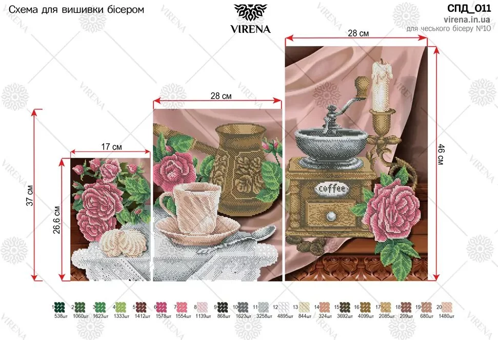 Модульні схеми під вишивку бісером. Друк на габардині. Схема складається з трьох частин:28х46 см, 28х37 см, 17х26,6 см. За вашим бажанням можемо укомплектувати схему бісером.