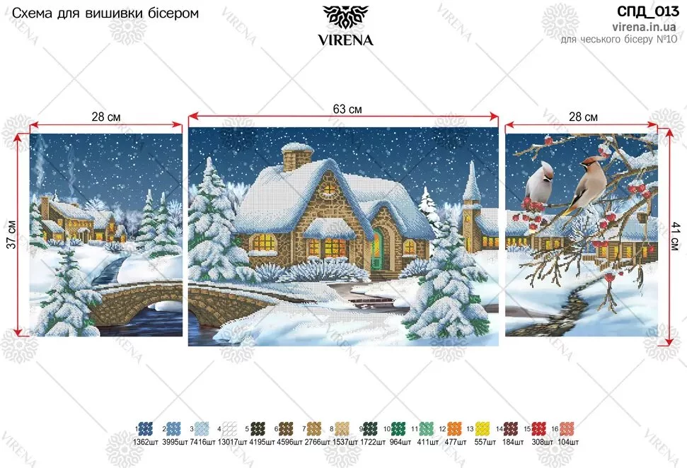 Модульні схеми під вишивку бісером. Друк на габардині. Схема складається з трьох частин: 63х41 см та 28х37 см- 2 шт. За вашим бажанням можемо укомплектувати схему бісером.