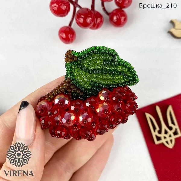 У набір входять: надрукована на фетрі схема вишивки та задня сторона брошки, булавка, бісер, бусини, нитки, голки та інші потрібні матеріали.
