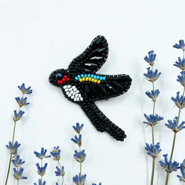 Набір для створення брошки вишитої бісером та бусинами.
