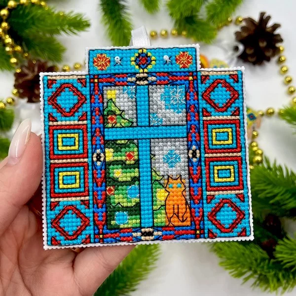Після вишивання потрібно по контуру обрізати пластикову канву, скласти пластини виворітною стороною в середину і по контуру зшити.