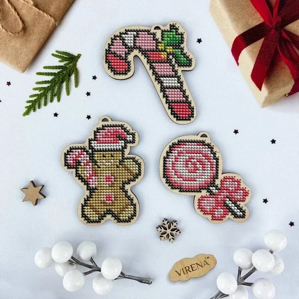 Комплект тематичних іграшок з дерева для вишивки бісером.