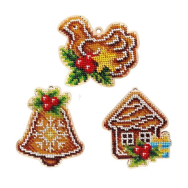Комплект тематичних іграшок з дерева для вишивки бісером.