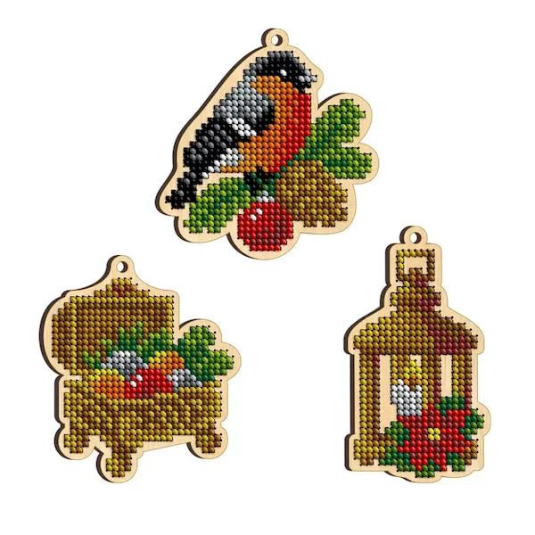 Комплект тематичних іграшок з дерева для вишивки бісером.