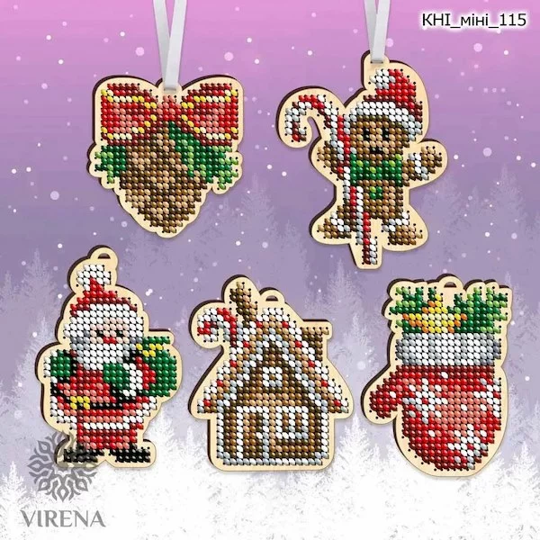 Комплект іграшок новорічних з дерева для вишивки бісером.