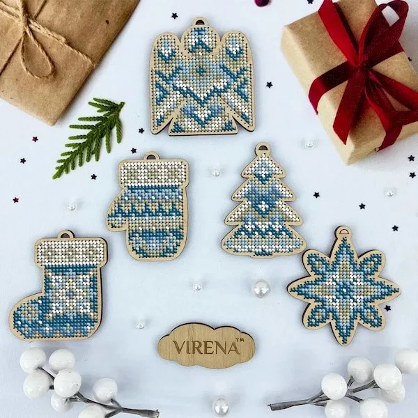 Комплект іграшок новорічних з дерева для вишивки бісером.