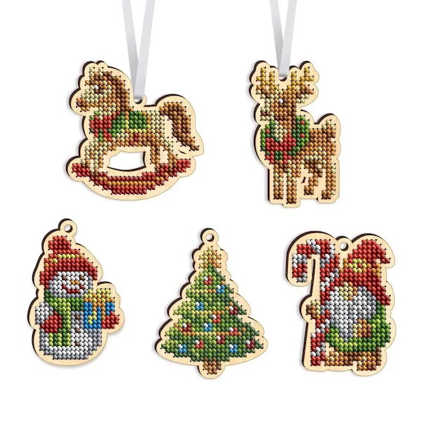 Комплект іграшок новорічних з дерева для вишивки бісером.