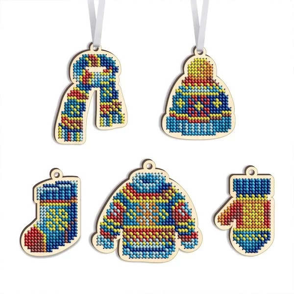 Комплект іграшок новорічних з дерева для вишивки бісером.