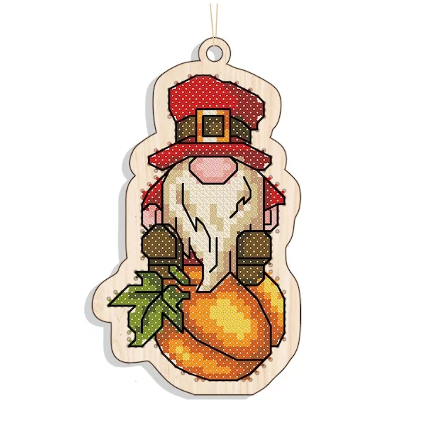 Новорічна іграшка підвіс на ялинку – Гном на гарбузі FNGi-051