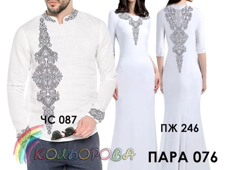 Комплект вишиванок для пар складається з чоловічої сорочки та плаття жіночого довгого.
