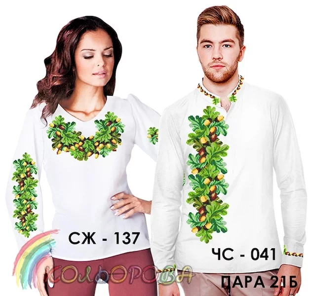 Комплект вишиванок для пар складається з чоловічої сорочки та жіночої сорочки