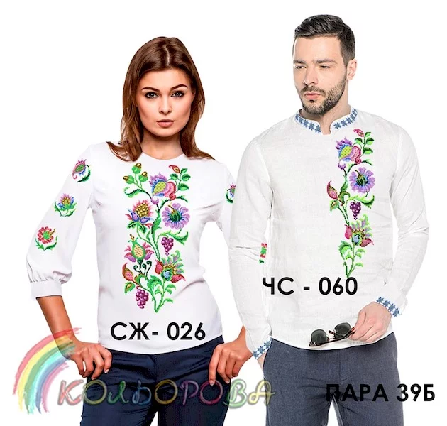 Комплект вишиванок для пар складається з чоловічої сорочки та жіночої сорочки