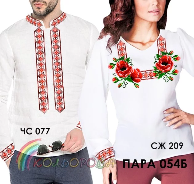 Комплект вишиванок для пар складається з чоловічої сорочки та жіночої сорочки