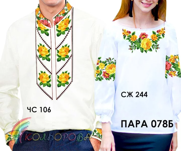 Комплект вишиванок для пар складається з чоловічої сорочки та жіночої сорочки