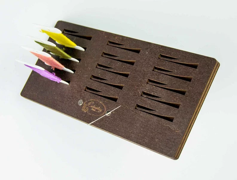 Підставка для бобін (шпуль) з магнітом для голок Розмір, мм(ШхВ): 18*8 Кількість прорізів: 15 Матеріал: Фанера Виробник: “Embroidery Craft”