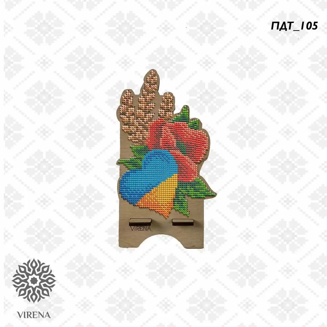У наборі є деталі підставки з фанери, схема вишивки та фігурний фетр для оформлення виворітньої сторони.