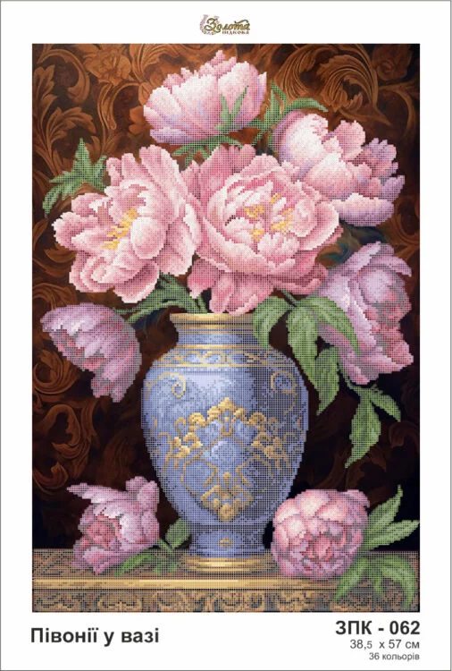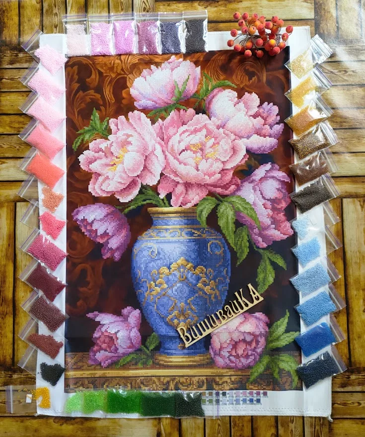 Схема під вишивку бісером. Друк на атласі. Розмір 38,5х57 см. До схеми додається список рекомендованих кольорів бісеру.