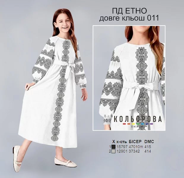 Заготовка під вишивку довгого плаття встилі етно для дівчат віком 5-10 років.
