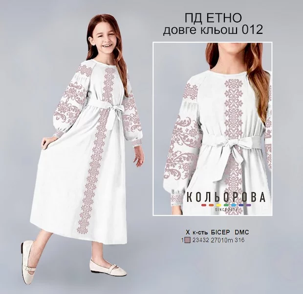 Заготовка під вишивку довгого плаття встилі етно для дівчат віком 5-10 років.