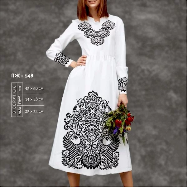 - на чорній (темній) тканині малюнок не наноситься. Малюнок друкується на водорозчинному флізеліні, який додається у комплект. Ціна заготовки не змінюється, але вишивати менш зручно.