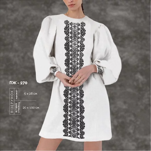 - на чорній (темній) тканині малюнок не наноситься. Малюнок друкується на водорозчинному флізеліні, який додається у комплект. Ціна заготовки не змінюється, але вишивати менш зручно.