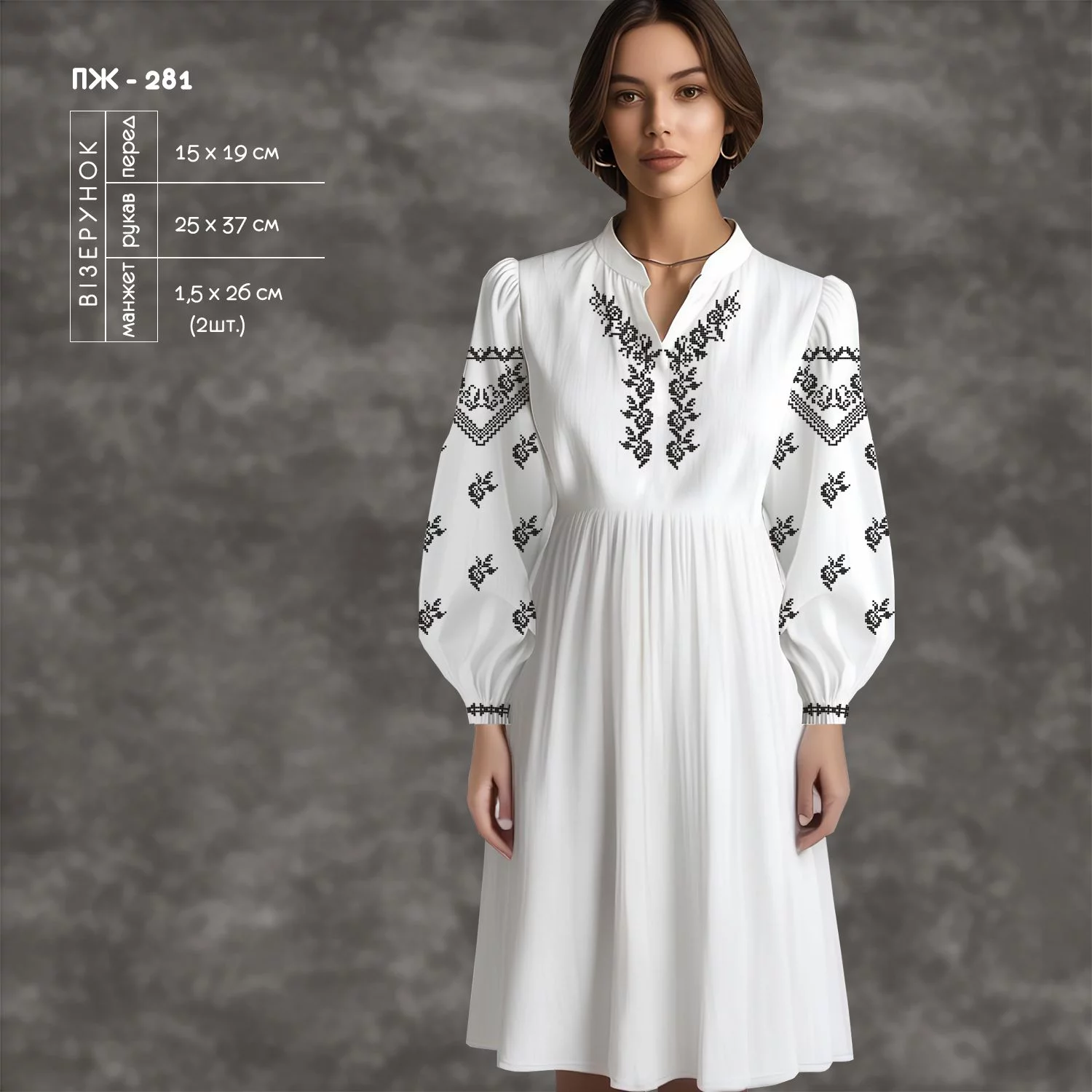 - на чорній (темній) тканині малюнок не наноситься. Малюнок друкується на водорозчинному флізеліні, який додається у комплект. Ціна заготовки не змінюється, але вишивати менш зручно.