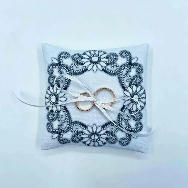 Подушка декоративна весільна під обручки для вишивки бісером на габардині, що проклеєний флізеліном.