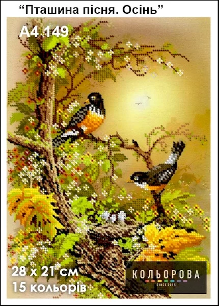 Схема під вишивку бісером. Друк на габардині. Розмір 28х21 см. До схеми додається список рекомендованих кольорів бісеру.