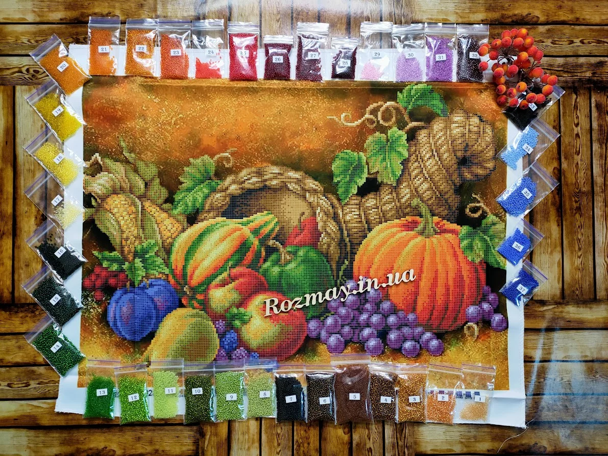 Схема під вишивку бісером. Друк на атласі. Розмір 39,5х54,5 см. До схеми додається список рекомендованих кольорів.