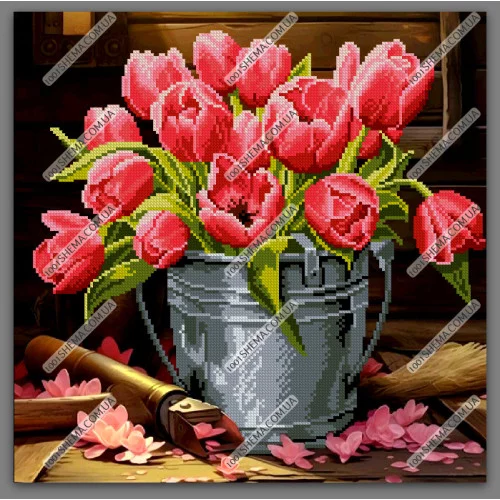 Схема під вишивку бісером. Друк на габардині. Розмір 35х35 см. До схеми додається список рекомендованих кольорів бісеру.