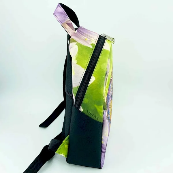 Рюкзак має цікавий крій зі зміщеною застібкою та фігурним бочком.