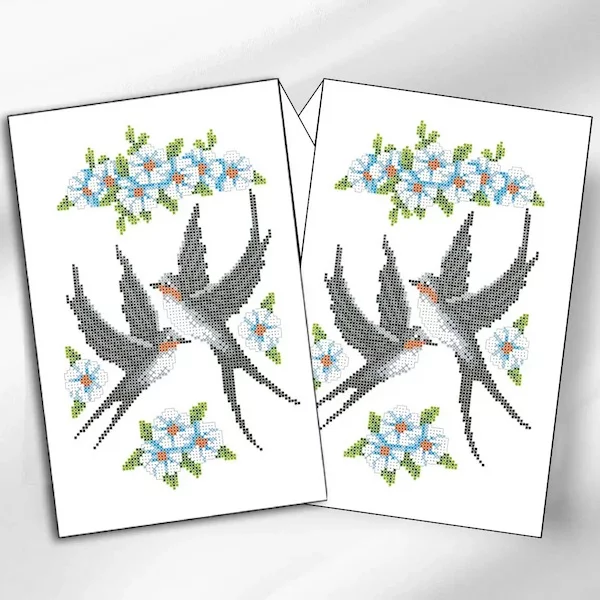 Зрізи рушника обметані. Малюнок водостійкий. Схема чітка з насиченими кольорами та високою якістю друку.