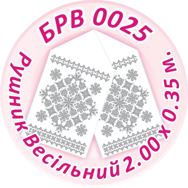 Заготовка під вишивку весільного рушника. Розмір 200х35 см. Розмір малюнку під вишивку 27х36 см. Край рушника обметаний.