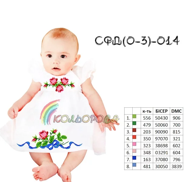 Також є титулка-ключ в якій прописані рекомендовані кольори бісеру Preciosa та ниток муліне DMC, їх кількість.