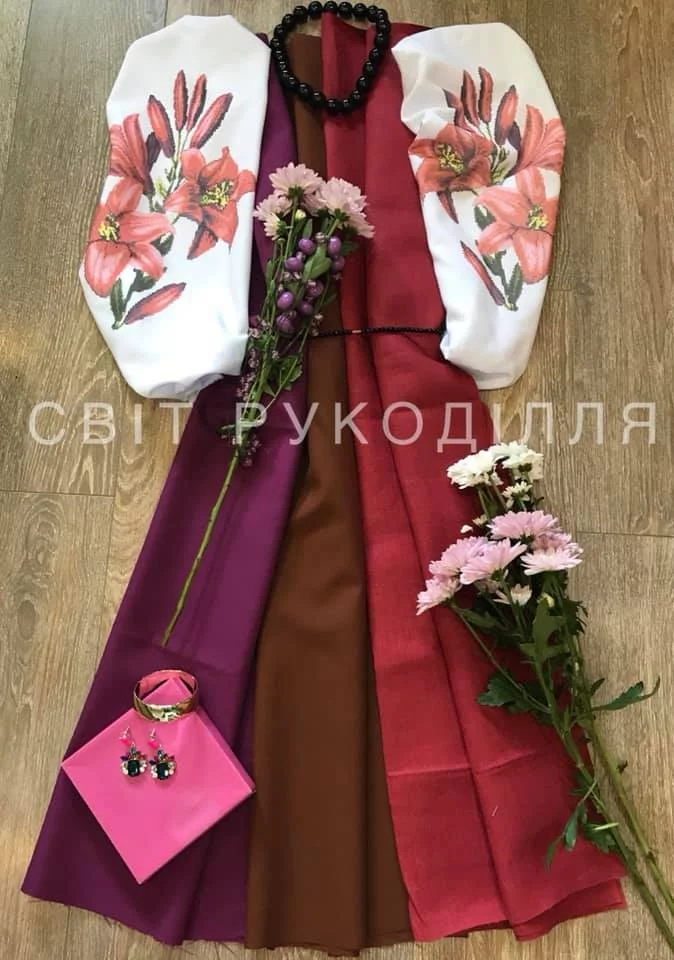 Заготовка під вишивку сарафану. Заготовка НЕ ПОШИТА. Вона складається з прямокутних відрізків тканини, які після вишивки необхідно розкроїти та сшити по своєму фасону і розміру. Розміри відрізків на заготовку - 75х115 см - 2 шт (на перед і спинку), рукава - 60х75 см - 2 шт (домоткане полотно 70х115 см та 60х70 см відповідно). Будь ласка, в коментарях до замовлення вказуйте бажаний колір тканини.