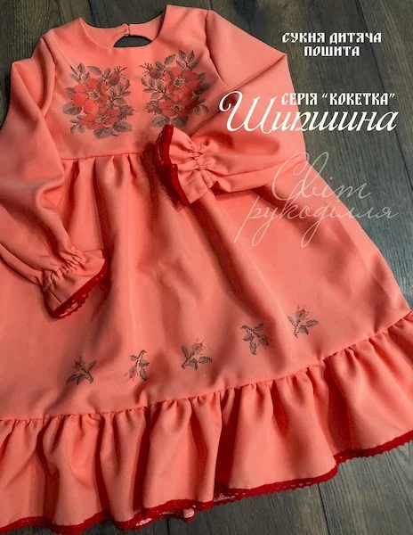 Пошита сукня під вишивку бісером. Матеріал персиковий габардин. Після вишивки сукня не потребує додаткових дій по зшиванню. Зверніть увагу! При пошитті можлива похибка в 1-2 см. Будь ласка, перед замовленням звіряйтесь з розмірною сіткою виробника.