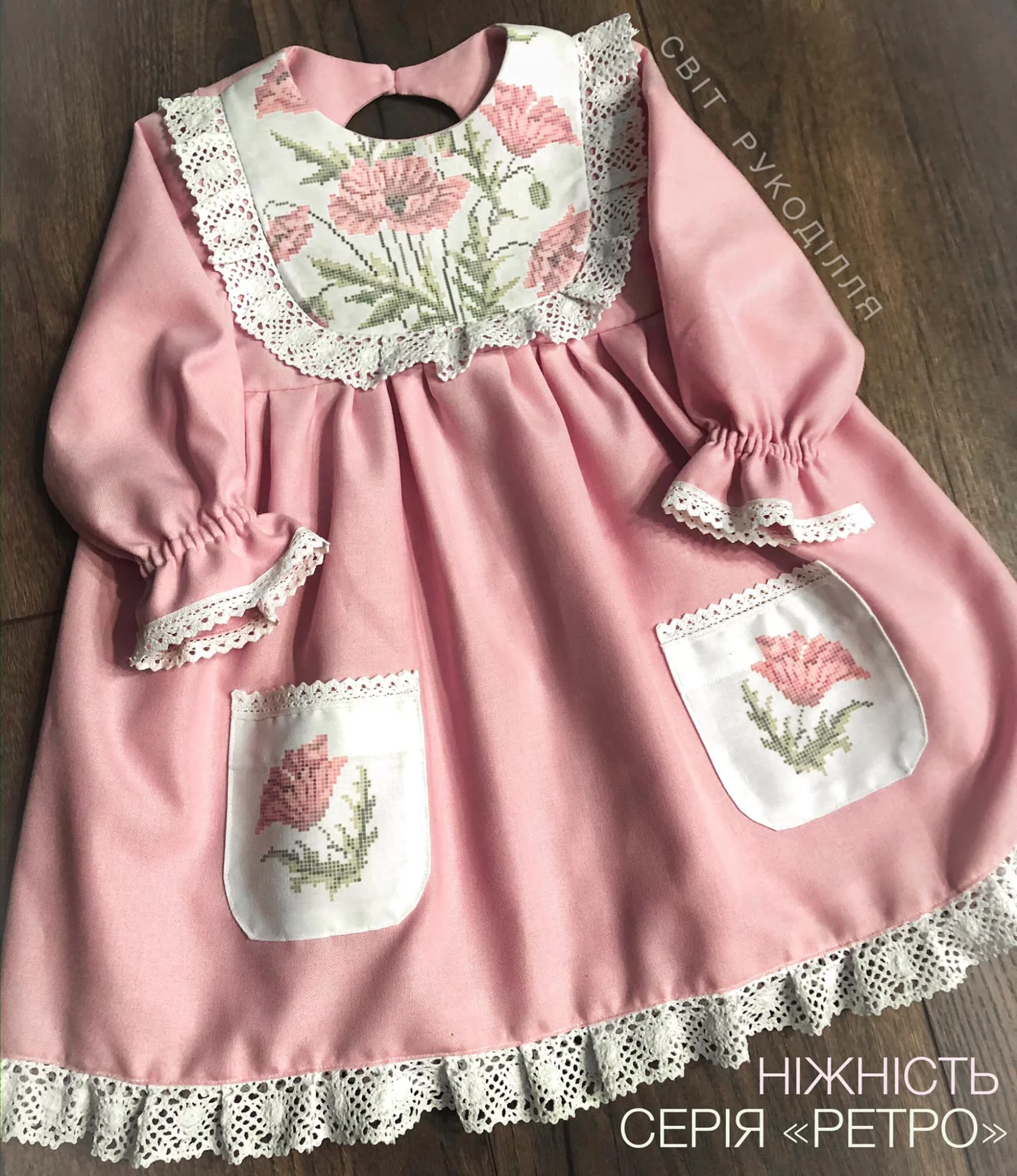 Пошита сукня під вишивку бісером. Матеріал сукні - рожеве домоткане полотно. Після вишивки сукня не потребує додаткових дій по зшиванню. Зверніть увагу! При пошитті можлива похибка в 1-2 см. Будь ласка, перед замовленням звіряйтесь з розмірною сіткою виробника.