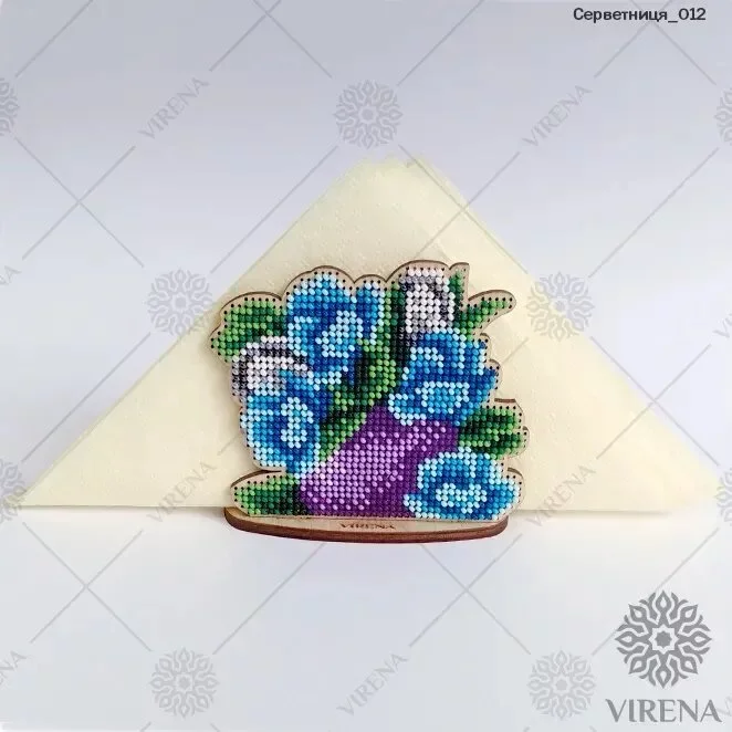 Придбавши серветницю ви отримаєте дві бічні стінки та основу, також серветниця комплектується фігурними фетровими пластинами для декорування звороту вишивки та вкладкою з надрукованою схемою (на вкладці зображена схема та розкладка бісеру)