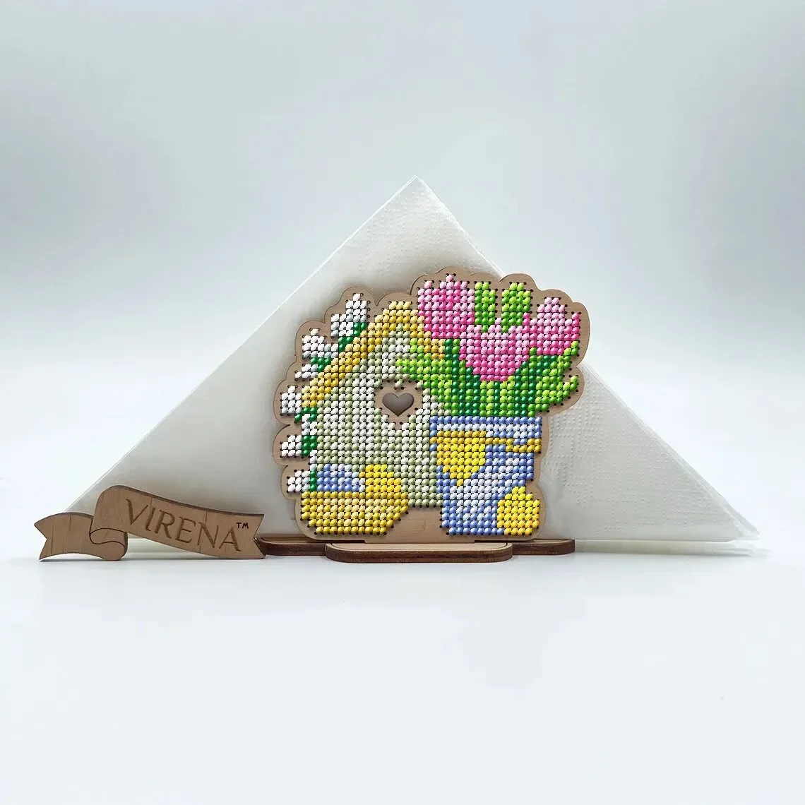 Дерев'яні стінки кріпляться до основи за допомогою спеціальних пазів. (після вишивки закріпити серветницю можна за допомогою декількох крапель клею ПВА)