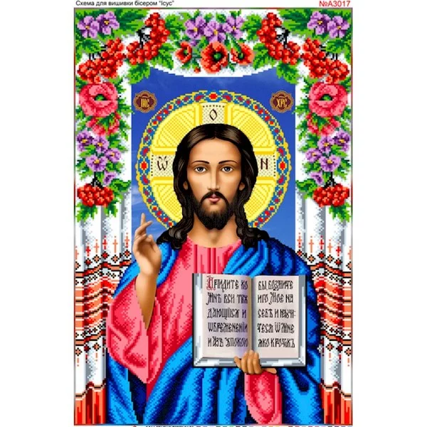 Схема для вишивки бісером «Ісус Христос Вседержитель в квітах» (А3017)