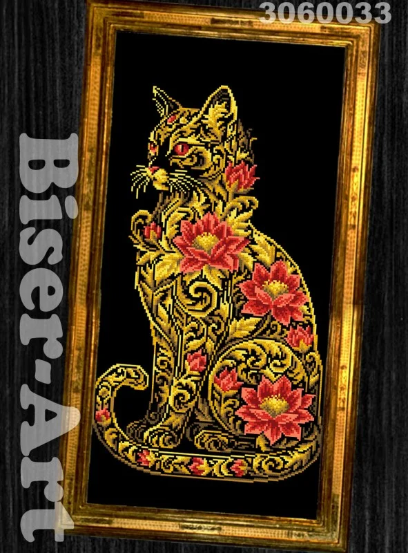 Схема вишивки бісером Золотий котик з квітами (3060033)
