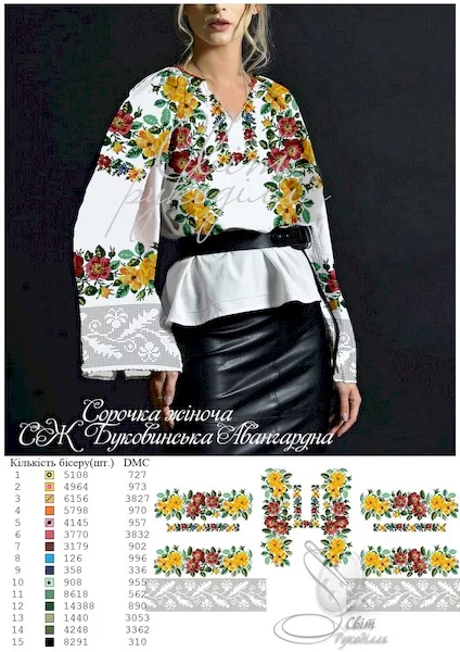 Не пошита заготовка під вишивку бісером або нитками. Друк на тканині. Заготовка складається з прямокутних відрізків тканини, які після вишивки необхідно розкроїти та сшити по своєму розміру та фасону.