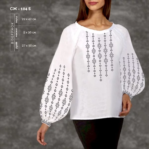 - на чорній (темній) тканині малюнок не наноситься. Малюнок друкується на водорозчинному флізеліні, який додається у комплект. Ціна заготовки не змінюється, але вишивати менш зручно.