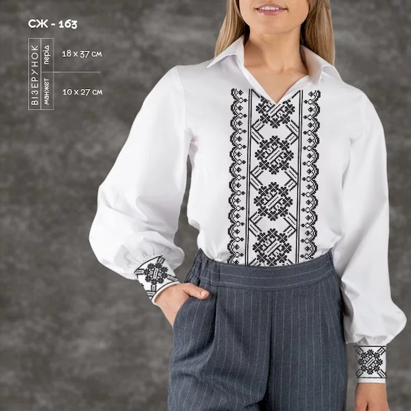 - на чорній (темній) тканині малюнок не наноситься. Малюнок друкується на водорозчинному флізеліні, який додається у комплект. Ціна заготовки не змінюється, але вишивати менш зручно.