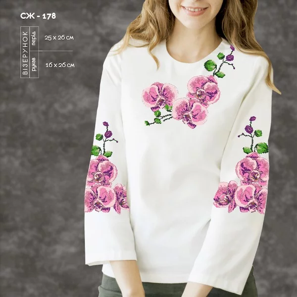 - на чорній (темній) тканині малюнок не наноситься. Малюнок друкується на водорозчинному флізеліні, який додається у комплект. Ціна заготовки не змінюється, але вишивати менш зручно.