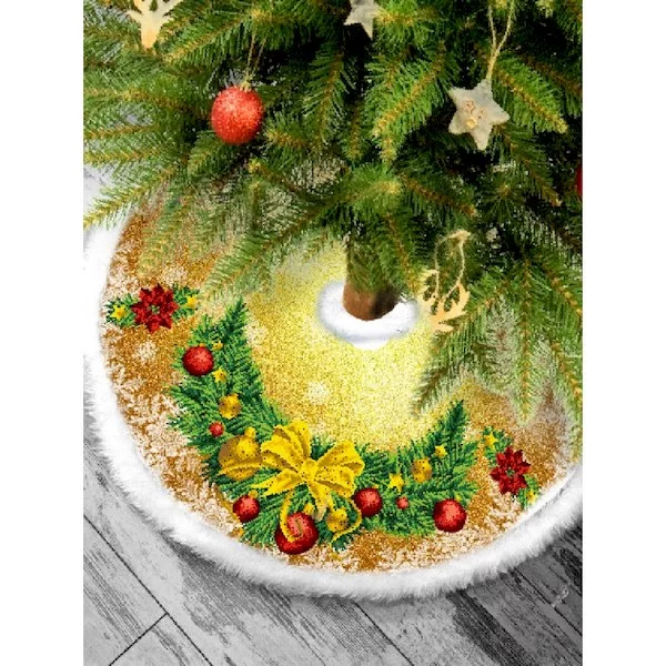 Матеріал — габардин проклеєний флізеліном. По краях оздоблена білим штучним хутром. Застібається спідниця липучками.
