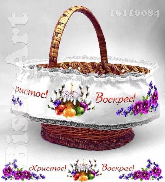 Розмір полотна 16х110 см (+/- 5см), по краям виробу біле мереживо, з внутрішньої сторони пришита резинка та стрічка для закріплення на кошику