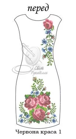 Заготовка під вишивку сукні. Заготовка НЕ ПОШИТА. Вона складається з прямокутних відрізків тканини, які після вишивки необхідно розкроїти та сшити по своєму фасону і розміру. Розміри відрізків на заготовку - 75х115 см - 2 шт (на перед і спинку) для габардину і 70х115 см -2 шт, для домотканого полотна. На темних тканинах друку немає! (До тканини додається водорозчинний флізелін з надрукованою схемою). Будь ласка, в коментарях до замовлення вказуйте бажаний колір тканини.