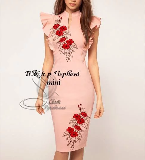 Заготовка під вишивку сукні. Заготовка НЕ ПОШИТА. Вона складається з прямокутних відрізків тканини, які після вишивки необхідно розкроїти та сшити по своєму фасону і розміру. Розміри відрізків на заготовку - 75х115 см - 2 шт (на перед і спинку) для габардину і 70х115 см -2 шт, для домотканого полотна. На темних тканинах друку немає! (До тканини додається водорозчинний флізелін з надрукованою схемою). Будь ласка, в коментарях до замовлення вказуйте бажаний колір тканини.