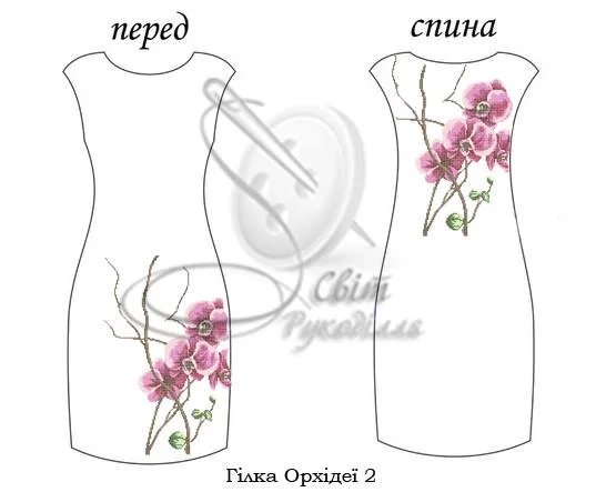 Заготовка під вишивку сукні. Заготовка НЕ ПОШИТА. Вона складається з прямокутних відрізків тканини, які після вишивки необхідно розкроїти та сшити по своєму фасону і розміру. Розміри відрізків на заготовку - 75х115 см - 2 шт (на перед і спинку) для габардину і 70х115 см -2 шт, для домотканого полотна. На темних тканинах друку немає! (До тканини додається водорозчинний флізелін з надрукованою схемою). Будь ласка, в коментарях до замовлення вказуйте бажаний колір тканини.